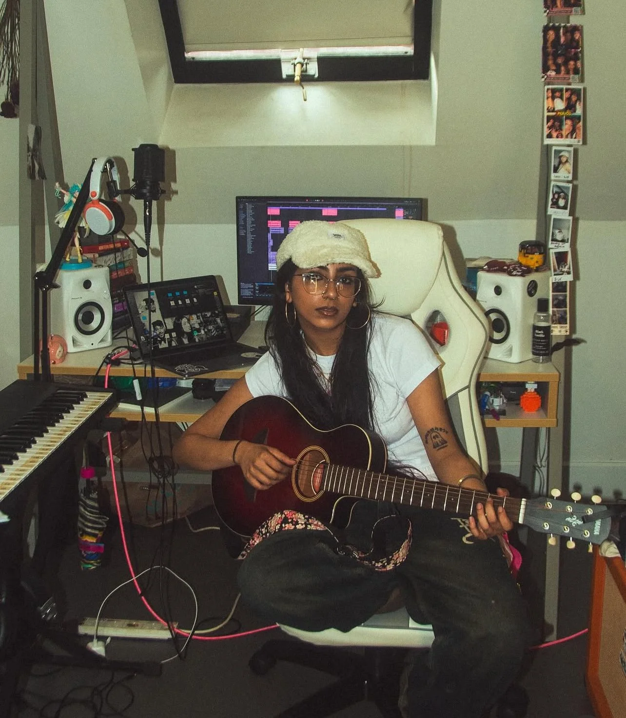 MANI JNX is a 20-year-old British-Punjabi DIY bedroom artist based in Birmingham, whose songwriting focuses on themes of nostalgia, yearning, identity, and queer love. Her music is profoundly confessional, with a sound that exists somewhere between bedroom pop, folk, indie rock and electronic, yet never feels limited to those genres. She has a beautiful control over the story she tells in each song, creating uniquely transcendent soundscapes, with melodies and textures placed with precision and intent.